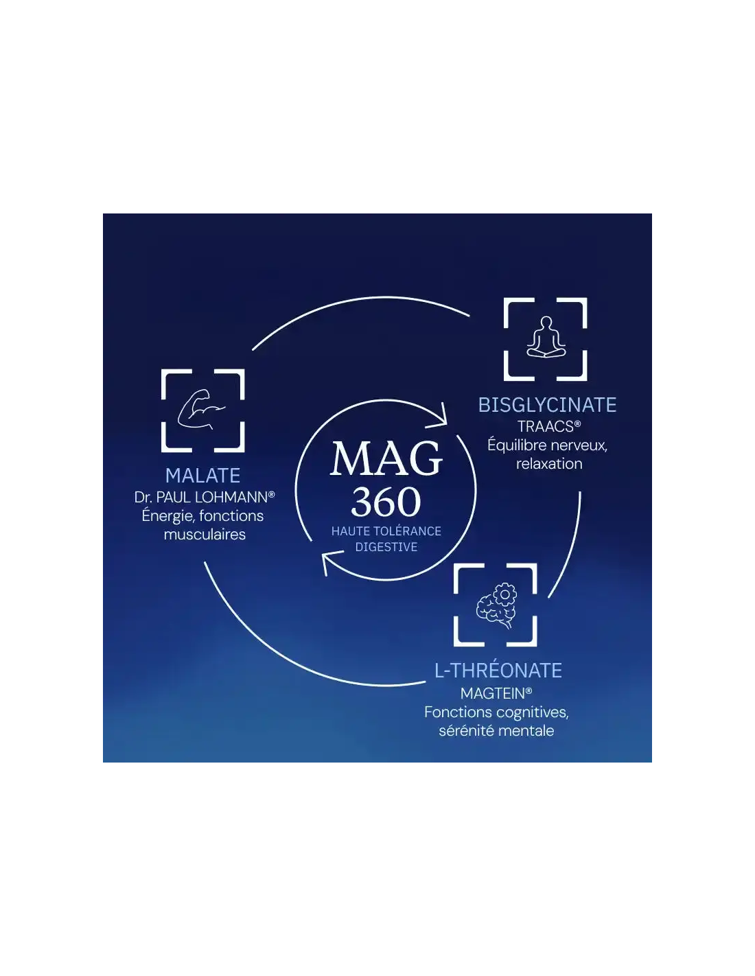 - Magnésium malate, bisglycinate et threonate associés